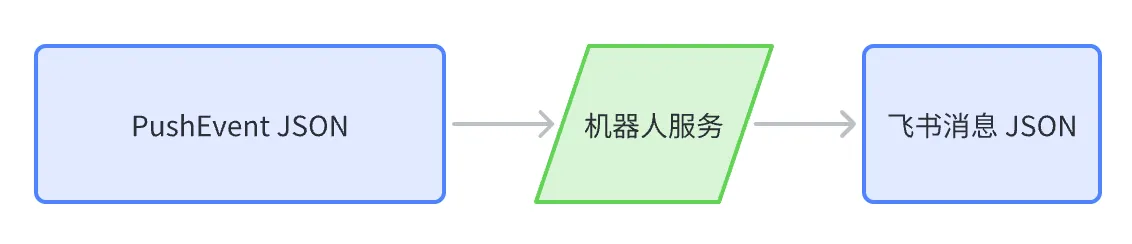 要想串起这些流程,技术思路上其实挺简单的,搭建一个机器人服务,这个服务负责接受不同格式的消息,转换成飞书消息,推送给飞书的webhook。