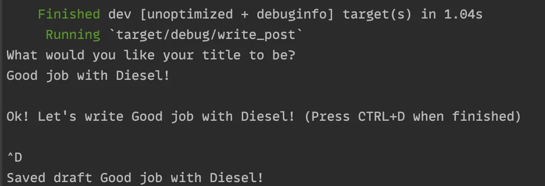 让我们试着执行写入逻辑的脚本cargo run --bin write_post