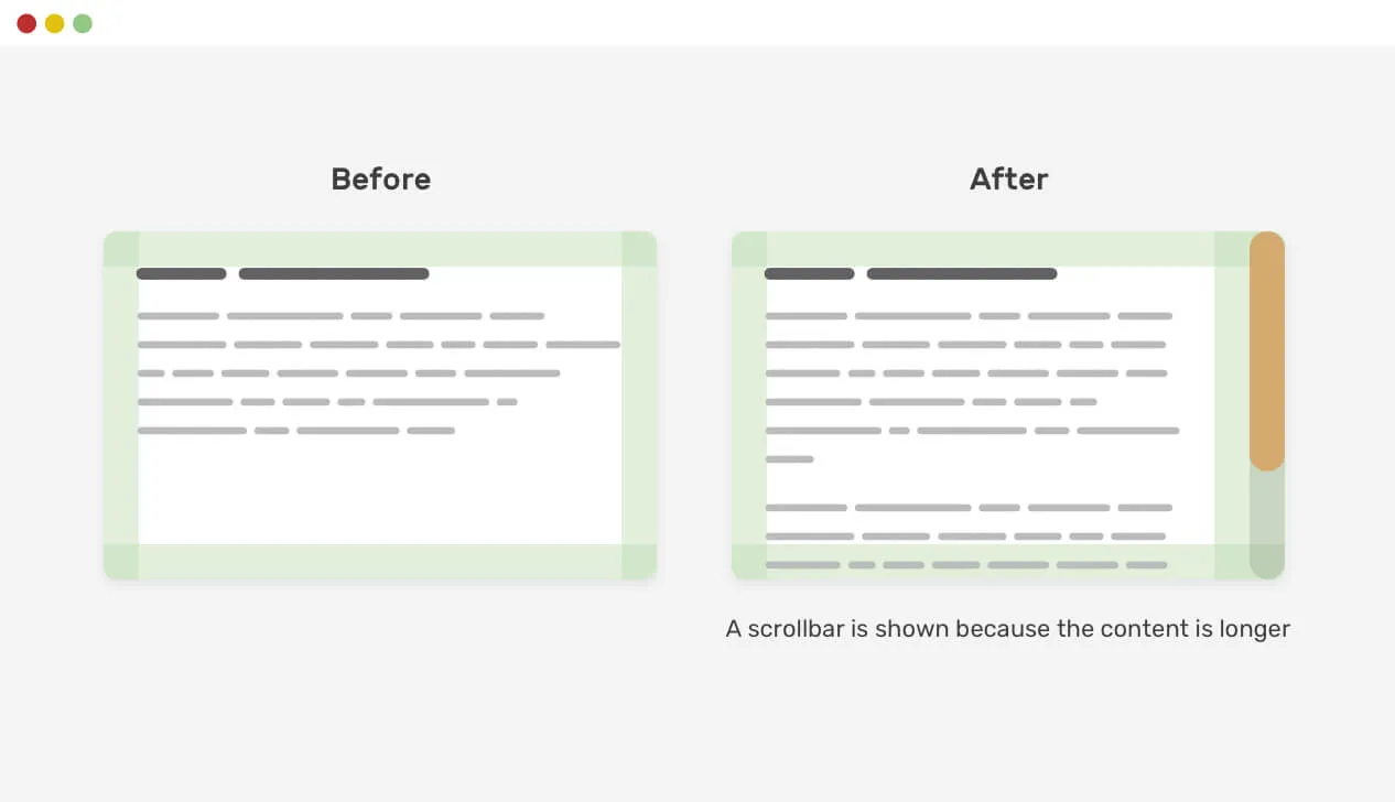 请注意,即使内容很短,也有一个滚动条可见。这对一个用户界面来说并不是好事。作为一个设计师,在不需要滚动条的情况下看到滚动条是很混乱的。