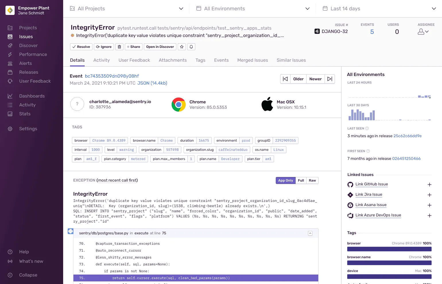 Sentry 的 Issue 包含了大量的信息,包括: