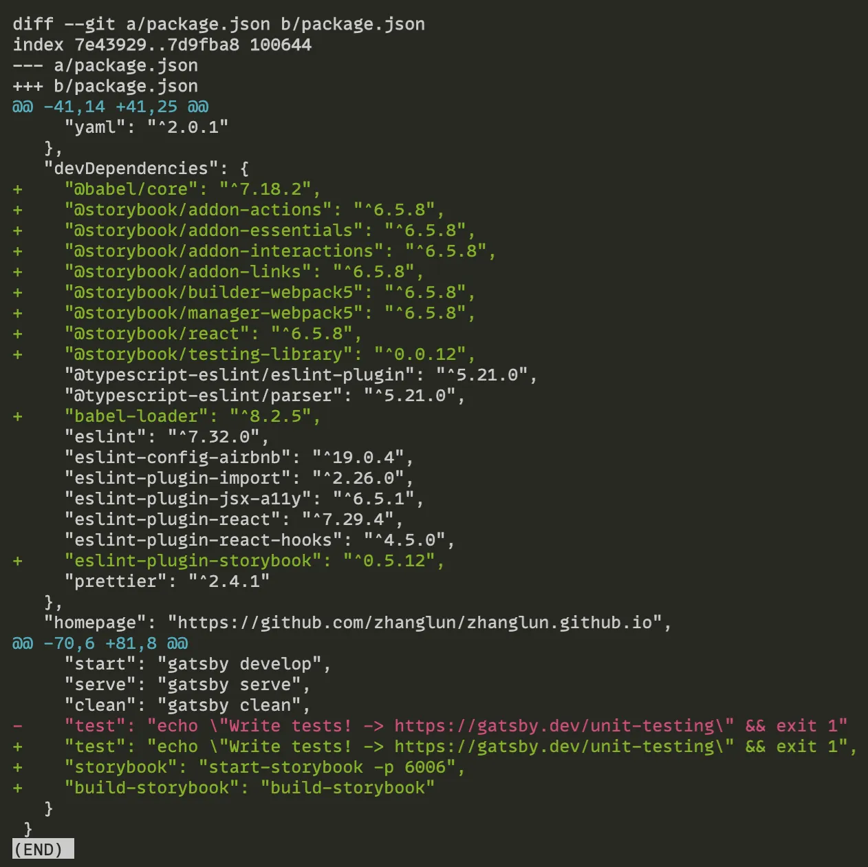 同时,对package.json也有修改,除了增加Storybook需要的依赖之外,还增加了两个script命令,用于启动开发服务器和打包文档
