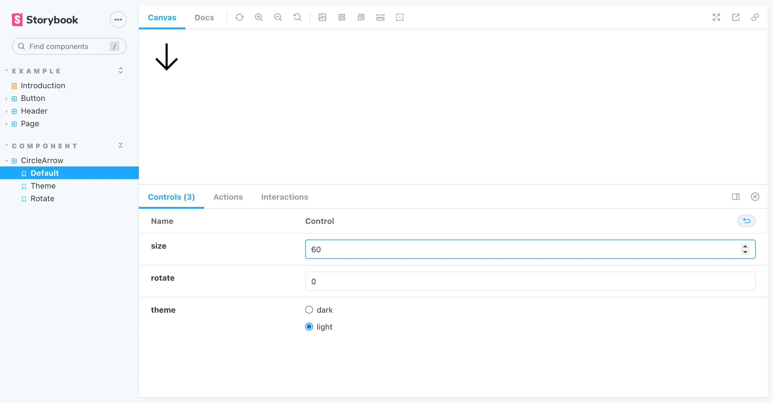 我已经将其封装为CircleArrow组件,现在来为它增加一个漂亮的文档。在组件所在目录中创建一个CircleArrow.stories.tsx 文件。