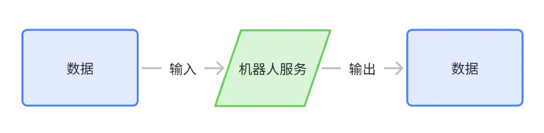 在开始编码之前,以产品经理的视角,梳理出机器人服务要具备的能力。首先对整个流程做一个简化,简化之后会发现这个问题真的真的非常简单,其本质就是数据的输入输出转换。