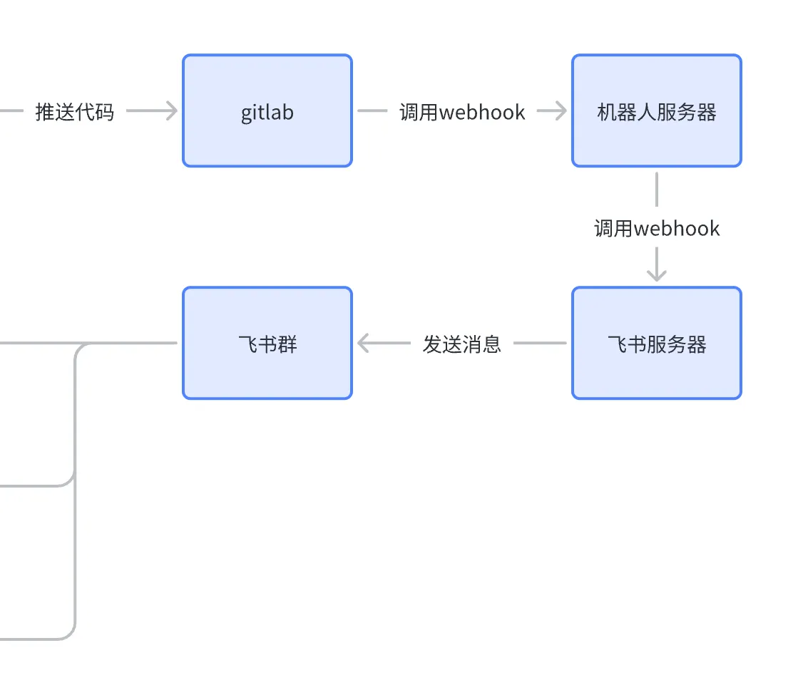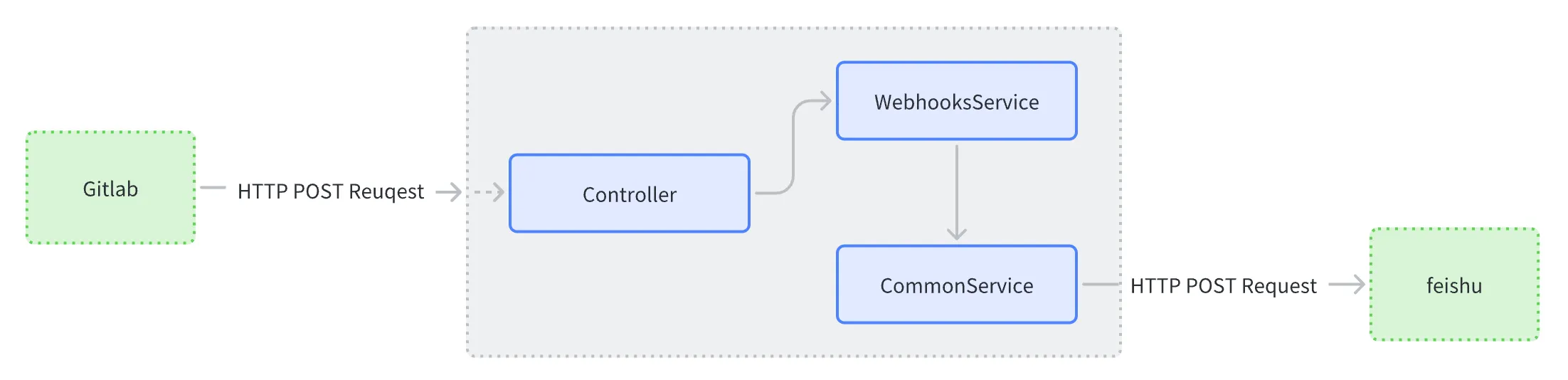 要想串起这些流程,技术思路上其实挺简单的,搭建一个机器人服务,这个服务负责接受不同格式的消息,转换成飞书消息,推送给飞书的webhook。