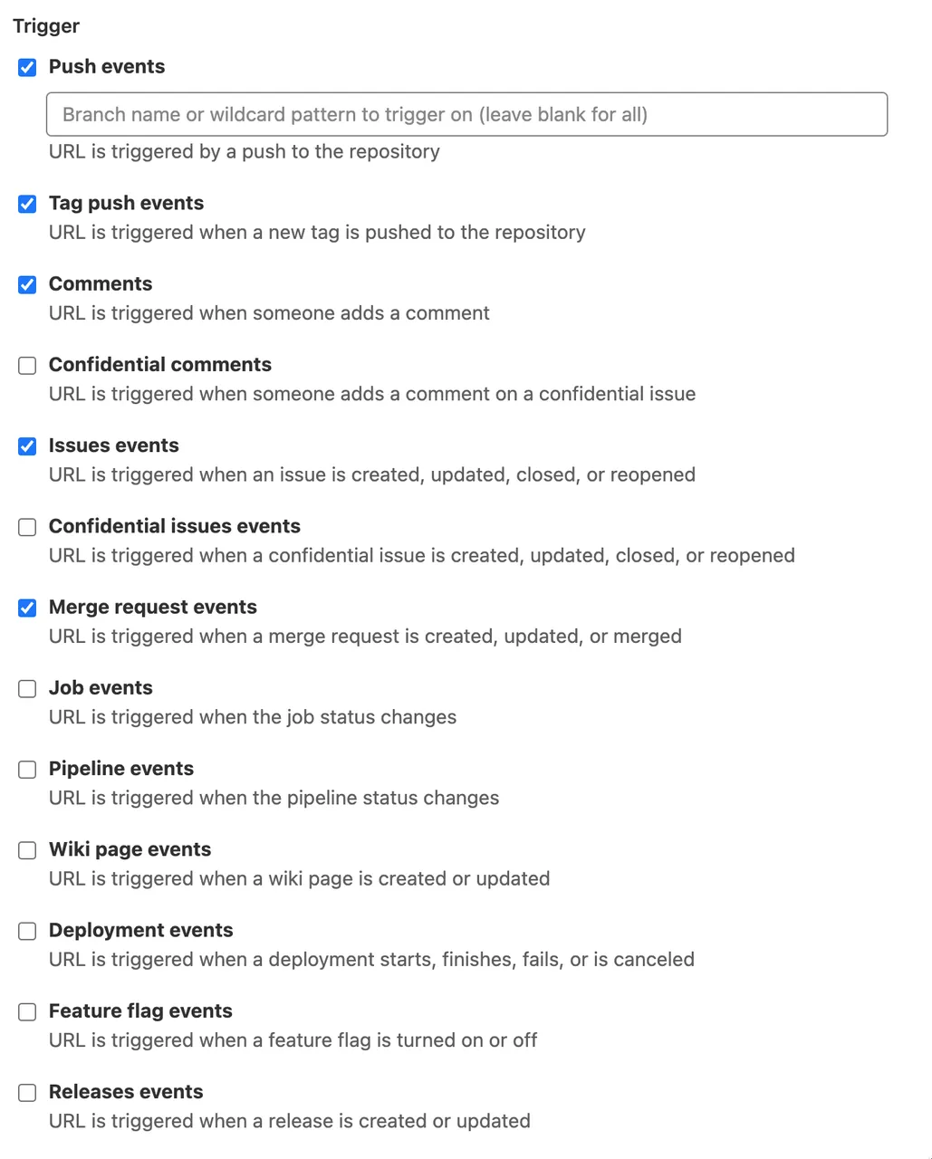 Gitlab也可以使用Webhook实现一些集成的事情。开发者使用者在推送代码、创建Issue或者提交合并请求的时候可以触发一个事前配置好的URL,GitLab会向设定的Webhook的URL发送一个POST请求,服务端拿到信息之后可以做很多事情。