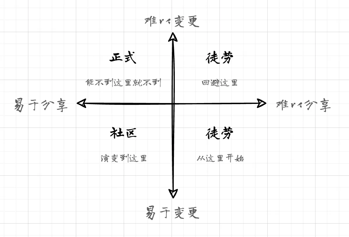 随着架构逐渐成熟,大多数团队会自然地从部落描述过渡到社区描述。社区描述方法对于许多团队来说已经够用了。如果项目还需要一些更持久的东西,则可以采用正式描述方式。